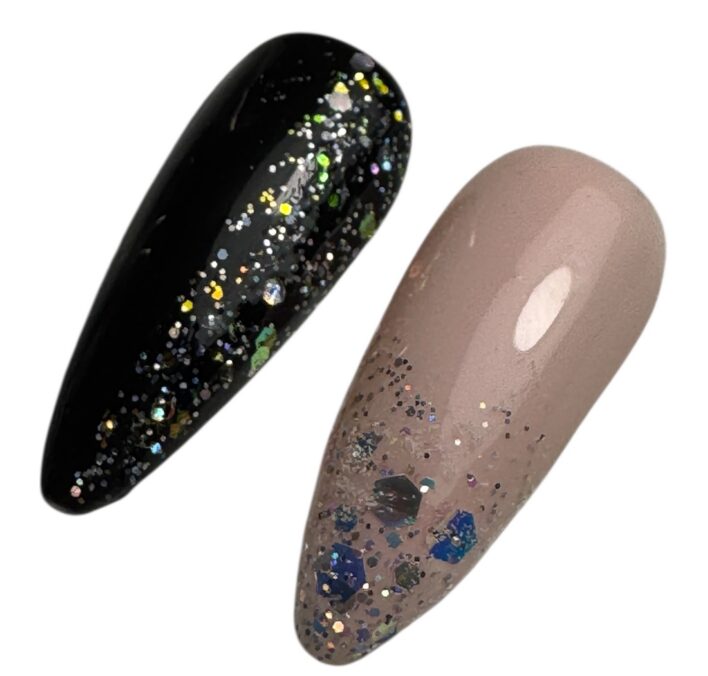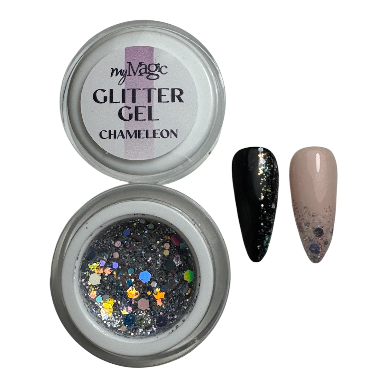 Mitte valguva koostisega geel, mille sees on erineva suuruste ja kujukestega glitter tükikesed. Võimaldab luua erinevaid isikupäraseid disaine. Kata küüs geeliga kasvõi üle terve küüne või kasuta mõne muu disaini loomiseks. Lihtne peale kanda.